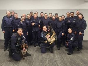 Policjanci – przewodnicy psów służbowych z Komendy Miejskiej Policji w Koszalinie odwiedzili słuchaczy kursu podstawowego