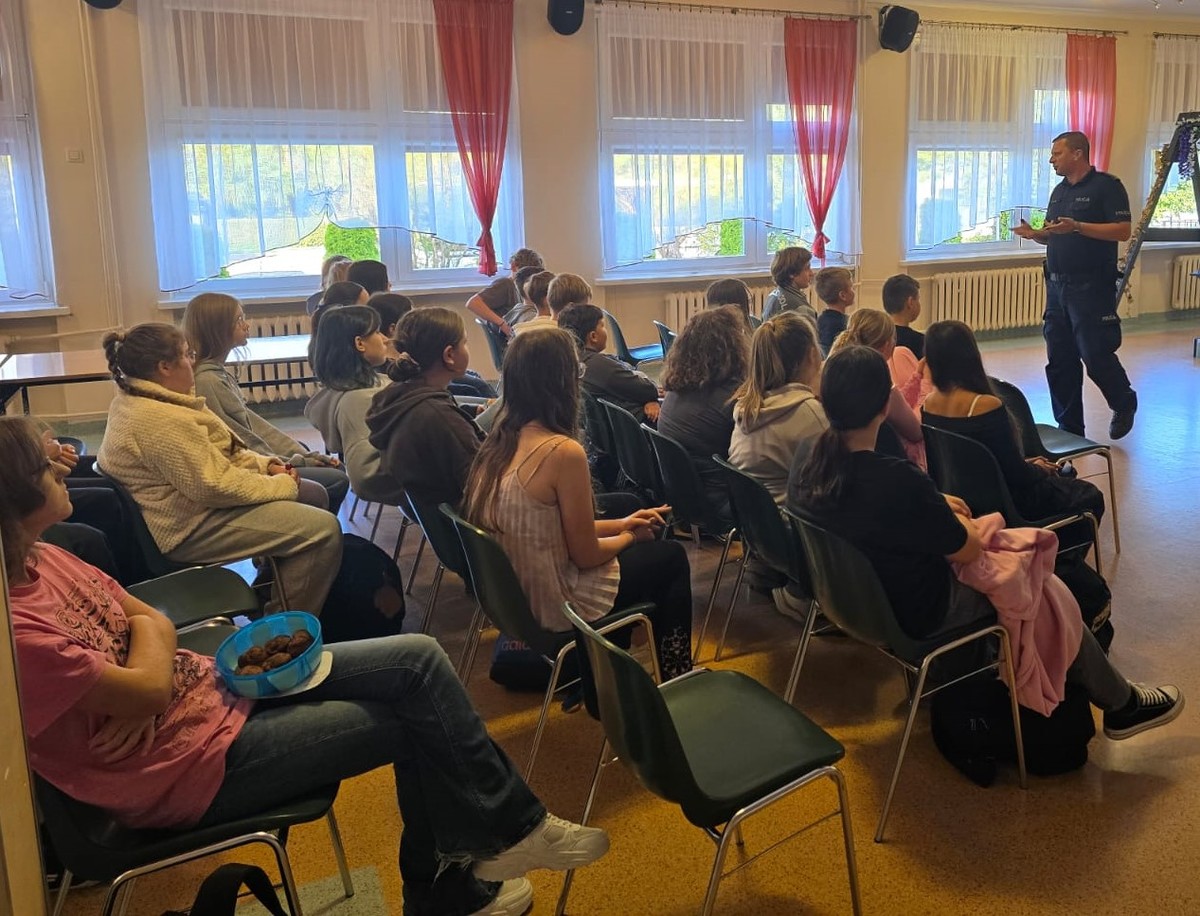 Spotkanie zakończyło się dyskusją, podczas której uczniowie mogli zadawać pytania i dzielić się swoimi doświadczeniami. Funkcjonariusze zachęcali do budowania atmosfery wzajemnego szacunku i odpowiedzialności w szkolnej społeczności.