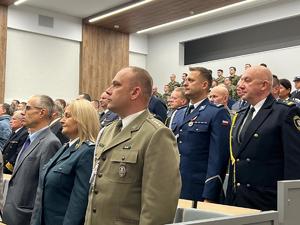 Uroczystość w której wzięli uczestniczyli przedstawiciele władz samorządowych, służb mundurowych oraz środowiska akademickiego, rozpoczęła się od tradycyjnego odśpiewania hymnu państwowego.