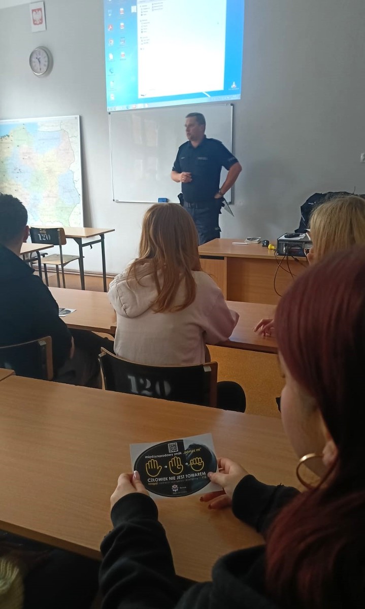 Podczas prelekcji policjanci wyjaśnili, na czym polega ten proceder, jak działają grupy przestępcze zajmujące się handlem ludźmi oraz jakie sygnały ostrzegawcze powinny wzbudzić czujność. Funkcjonariusze zwrócili uwagę, że ofiary bardzo często są zwabiane obietnicą atrakcyjnej pracy, lepszych zarobków lub możliwości wyjazdu za granicę. W rzeczywistości jednak trafiają w ręce osób, które odbierają im wolność i godność.