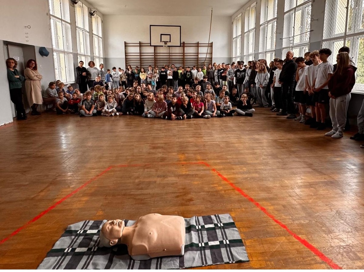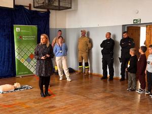 Sporą atrakcją okazała się część poświęcona pierwszej pomocy, którą wraz z policjantami prowadzili strażacy z OSP. Dzieci uczyły się, jak sprawdzić przytomność poszkodowanego, jak prawidłowo wezwać pomoc, a także jak ułożyć osobę w pozycji bezpiecznej. Uczniowie mogli przećwiczyć podstawowe czynności ratownicze pod okiem doświadczonych ratowników. Pracownicy KRUS rozdali najmłodszym elementy odblaskowe, przypominając, że widoczność po zmroku to klucz do bezpieczeństwa.