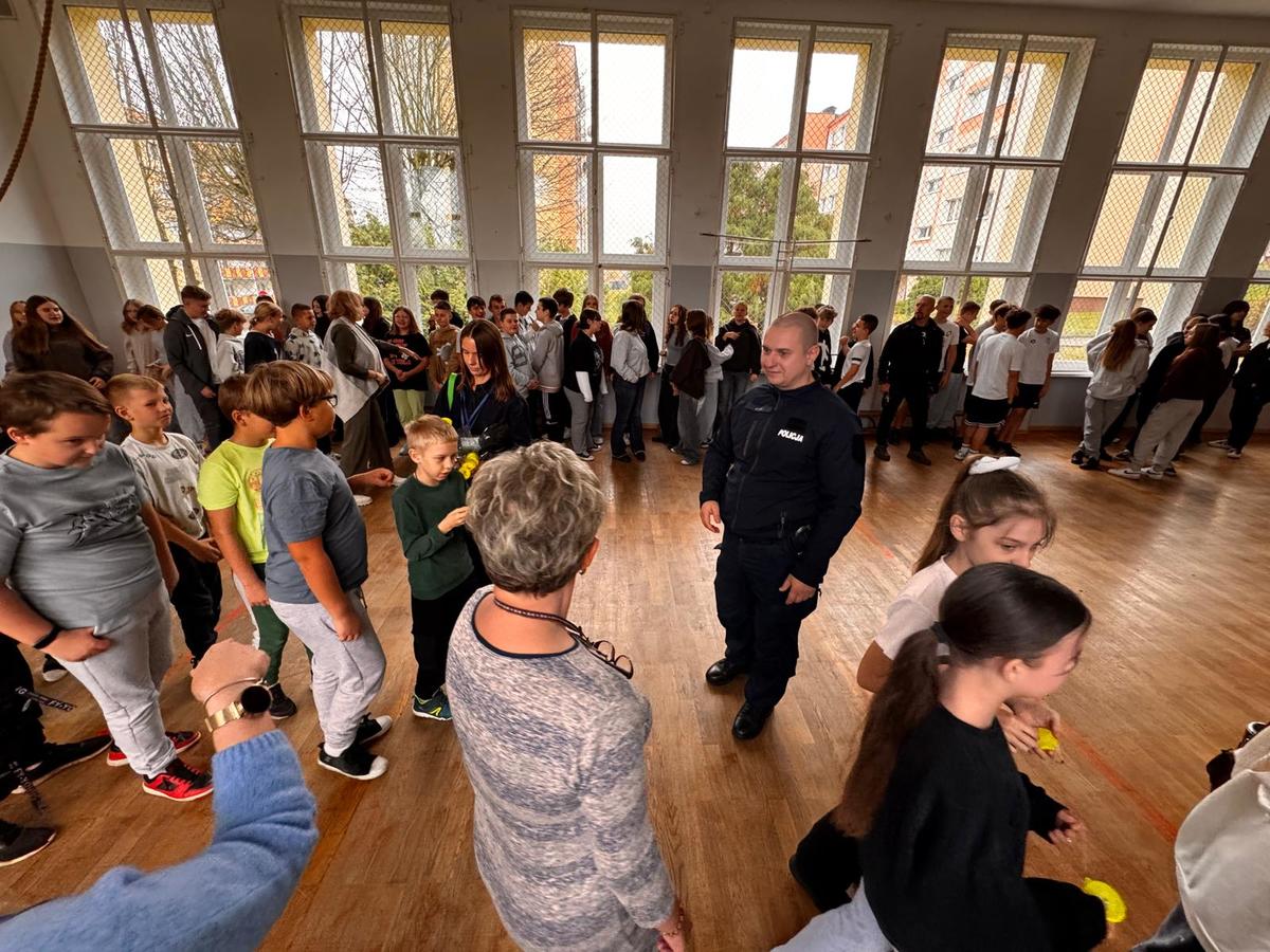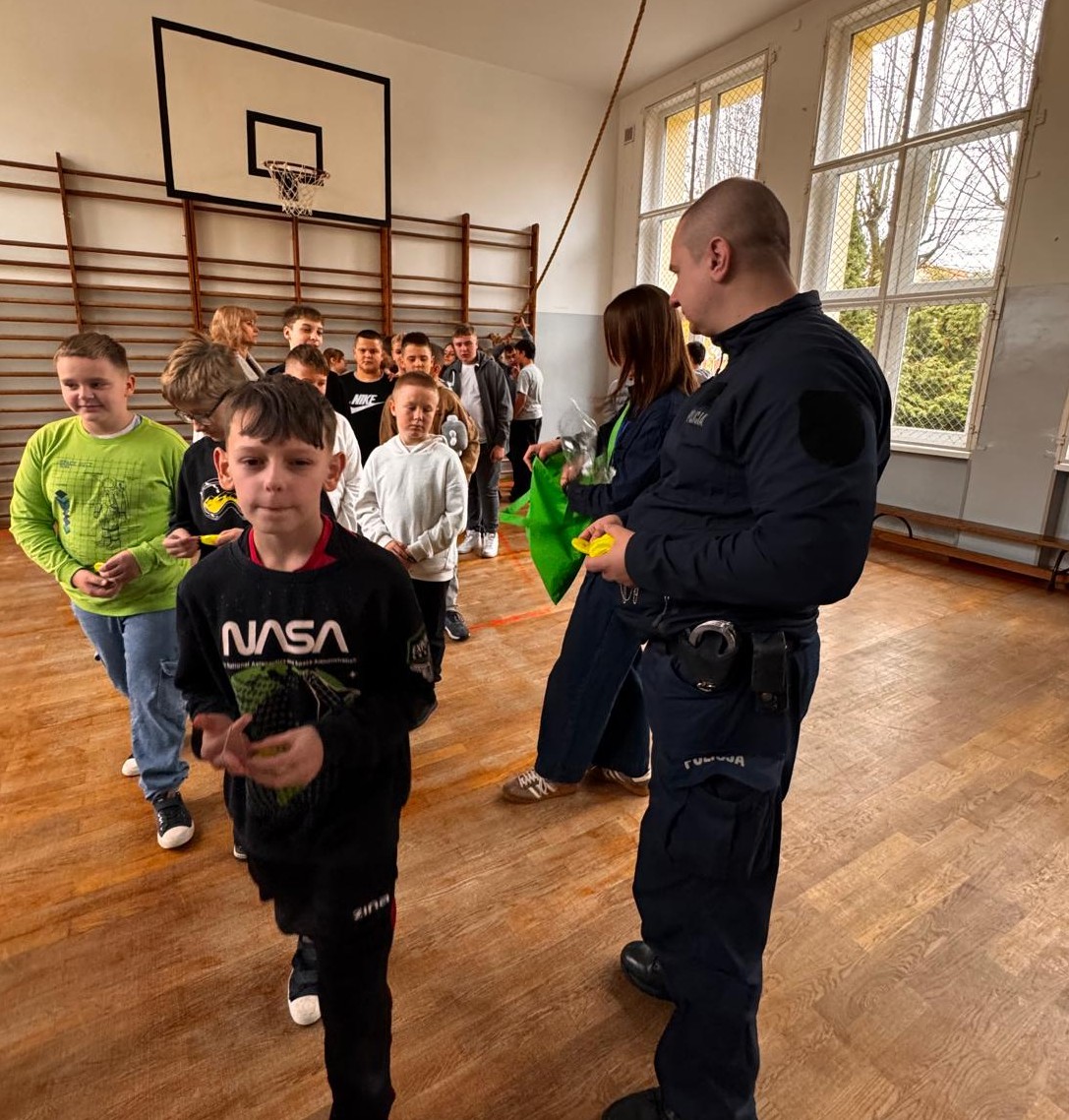 W trakcie wizyty policjanci zwracali uwagę, jak istotną rolę odgrywa świadome i odpowiedzialne zachowanie, zwłaszcza w pobliżu jezdni. Podkreślali, że dzieci na co dzień są uczestnikami ruchu drogowego – przemieszczają się pieszo, na rowerach czy hulajnogach – dlatego znajomość zagrożeń i właściwych reakcji może realnie wpływać na ich bezpieczeństwo. Funkcjonariusze zachęcali uczniów do korzystania z przejść dla pieszych, stosowania się do sygnalizacji świetlnej oraz dbania o swoją widoczność, szczególnie w okresie jesienno-zimowym.