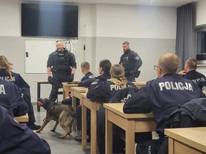 Policjanci – przewodnicy psów służbowych z Komendy Miejskiej Policji w Koszalinie odwiedzili słuchaczy kursu podstawowego