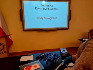 Policjanci podzielili się również swoją wiedzą na temat zabezpieczania miejsca zdarzenia oraz metod pracy technika kryminalistyki. Uczniowie zobaczyli na własne oczy, jak wygląda praca z materiałem dowodowym oraz jak profesjonalnie bada się ślady biologiczne.