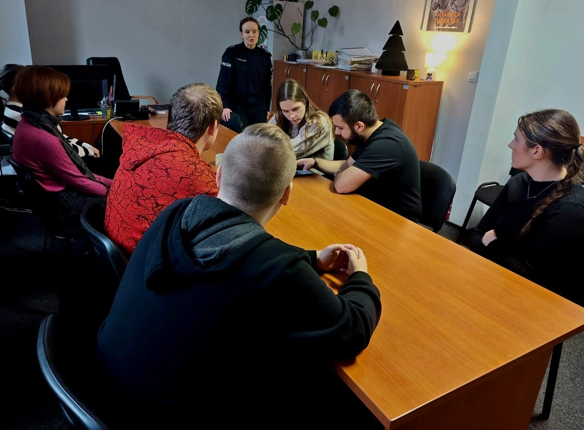 Młodzi słuchacze aktywnie uczestniczyli w rozmowie, pytając o najczęstsze mechanizmy oszustw, metody wykrywania nieprawidłowości oraz współpracę Policji z innymi instytucjami.