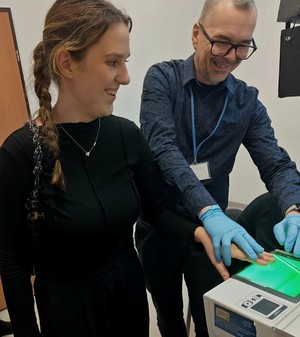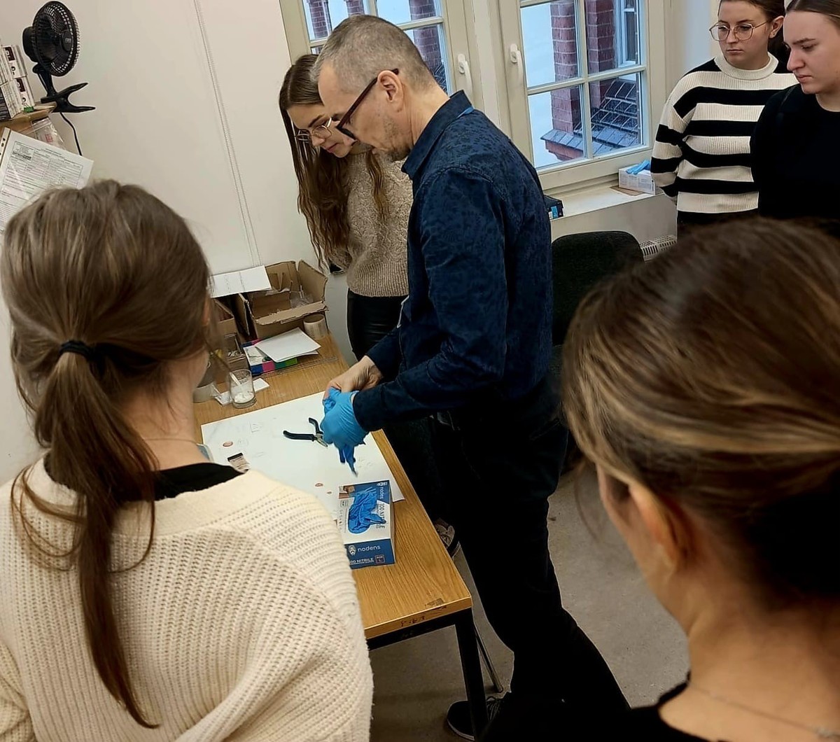 Podczas spotkania studenci mieli możliwość rozmowy z technikiem kryminalistyki, który przedstawił im kulisy swojej codziennej pracy. Wspólnie omówili m.in. sposób zabezpieczania śladów, wykorzystywany sprzęt oraz procedury stosowane na miejscu zdarzenia. Uczestnicy z zainteresowaniem słuchali i chętnie zadawali pytania dotyczące rozwiązywania zagadek kryminalnych oraz praktycznych aspektów pracy technika.