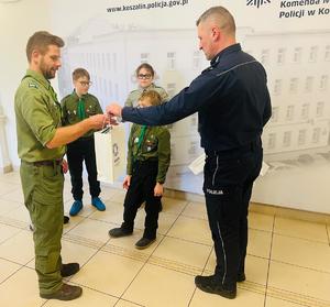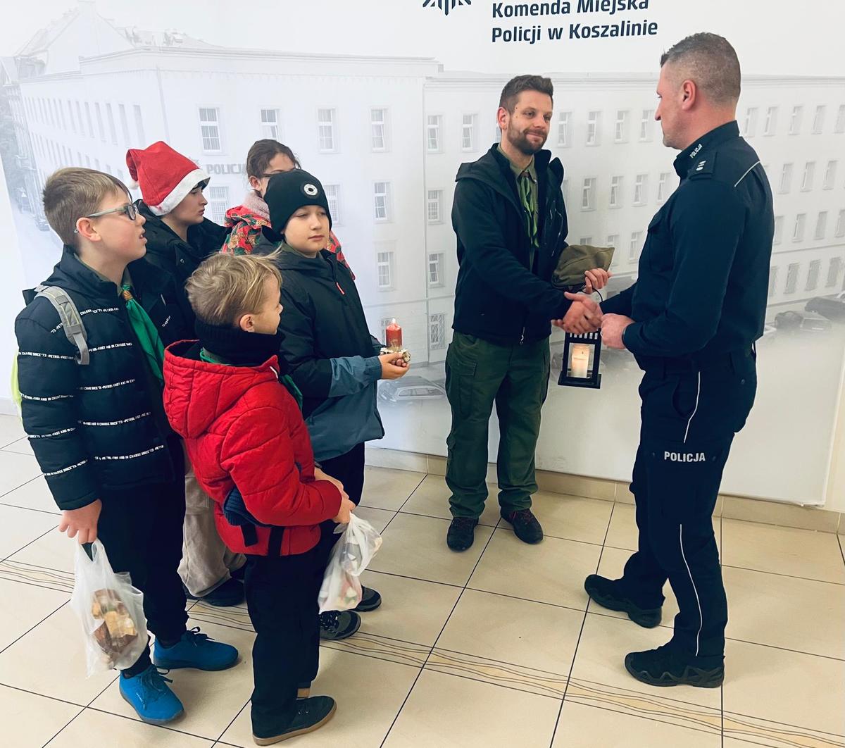 W koszalińskiej jednostce Policji gościli harcerze z Hufca Ziemi Koszalińskiej, którzy przekazali Betlejemskie Światełko Pokoju dla wszystkich funkcjonariuszy i pracowników Policji.