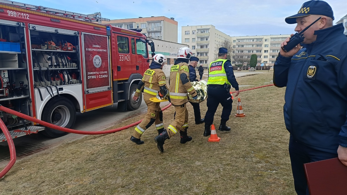 Główną rolę podczas ćwiczeń odgrywali strażacy Państwowej Straży Pożarnej, którzy realizowali zadania związane m. in. z prowadzeniem działań ratowniczo - gaśniczych oraz ewakuacją osób z zagrożonego obiektu. W działaniach nie zabrakło również obecności funkcjonariuszy innych służb, którzy wspierali strażaków w zabezpieczeniu terenu, koordynacji działań oraz zapewnieniu sprawnego przebiegu całej operacji.